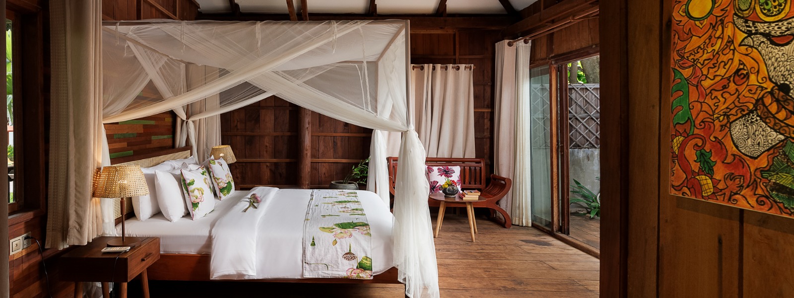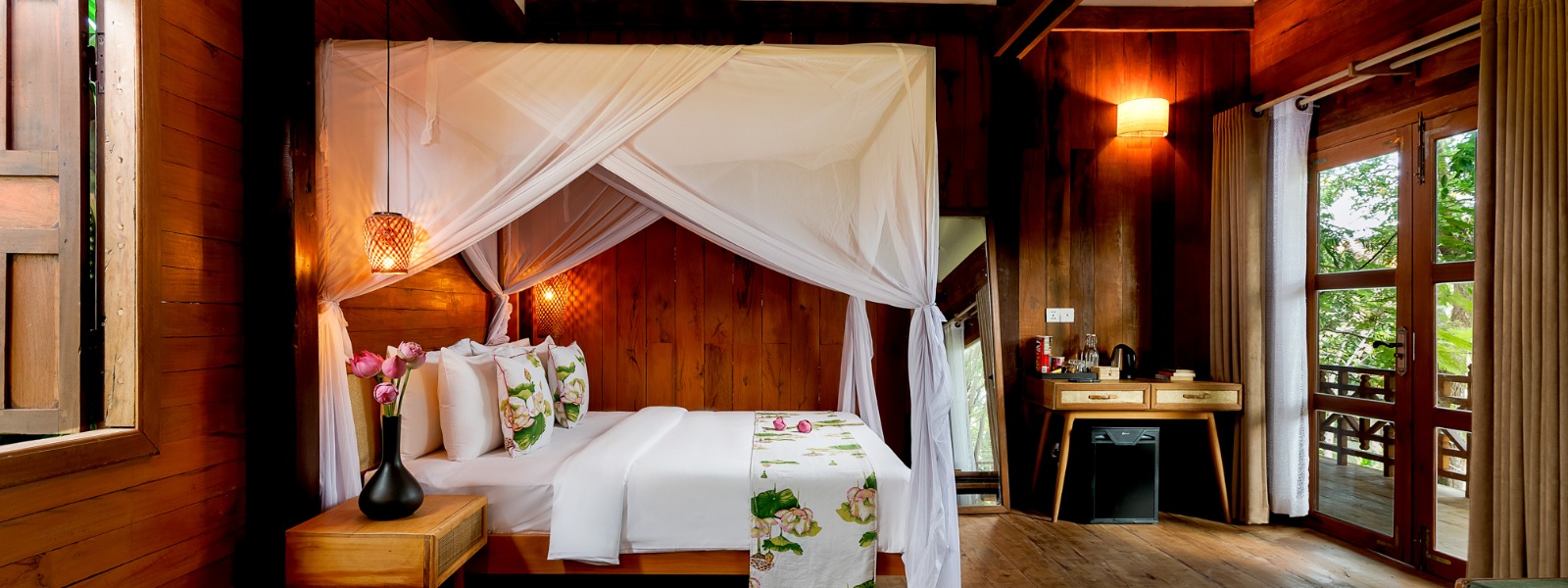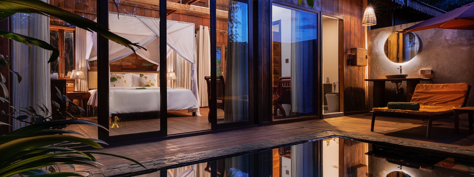 Since its opening in 2019, Dontrei Villa has asserted its identity: in the peaceful outskirts of Siem Reap City, a village-like, 21-room compound of brick-and-wood and traditional Khmer wooden houses scattered across lush gardens and surrounding the main swimming pool. In addition to two stylish bungalows with private plunge pool, two private pools have recently been added to the property.