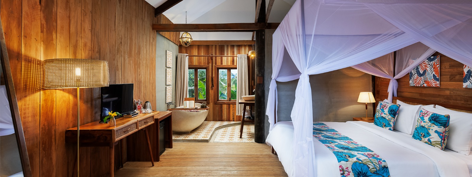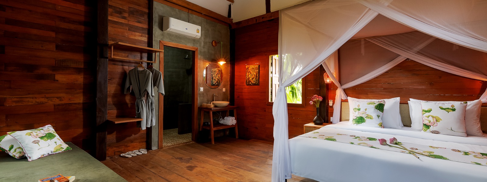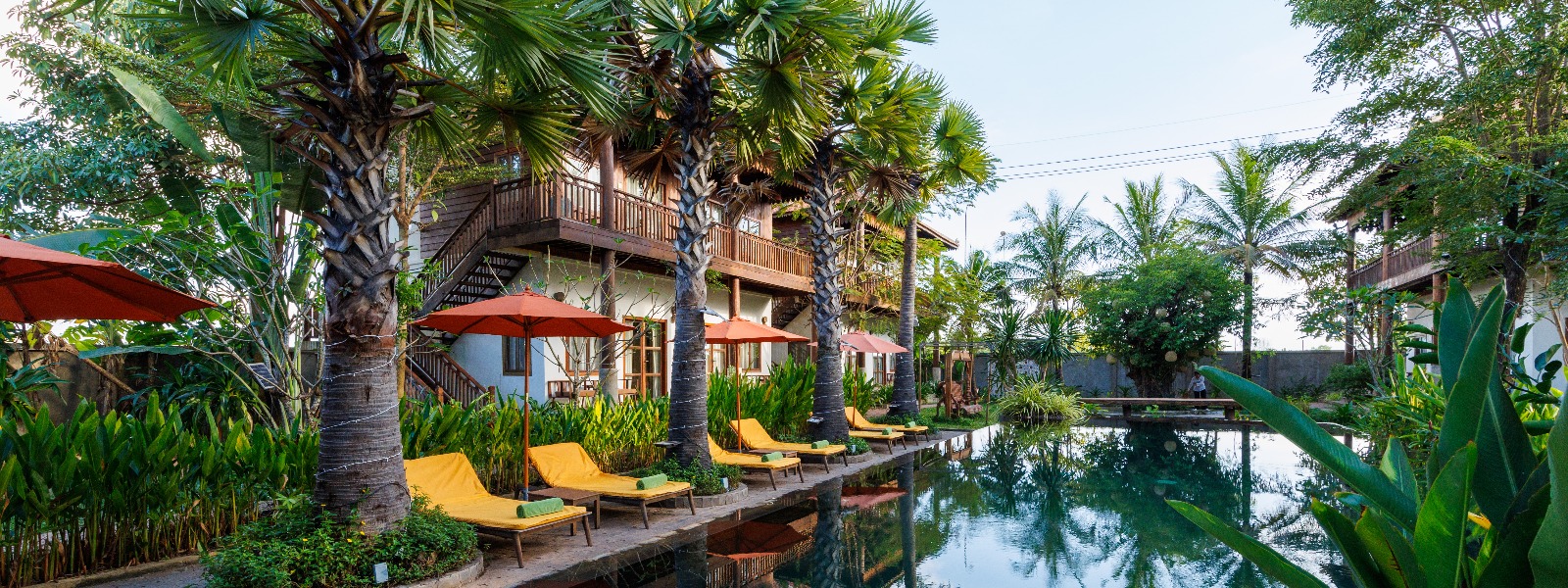 Since its opening in 2019, Dontrei Villa has asserted its identity: in the peaceful outskirts of Siem Reap City, a village-like, 21-room compound of brick-and-wood and traditional Khmer wooden houses scattered across lush gardens and surrounding the main swimming pool. In addition to two stylish bungalows with private plunge pool, two private pools have recently been added to the property.